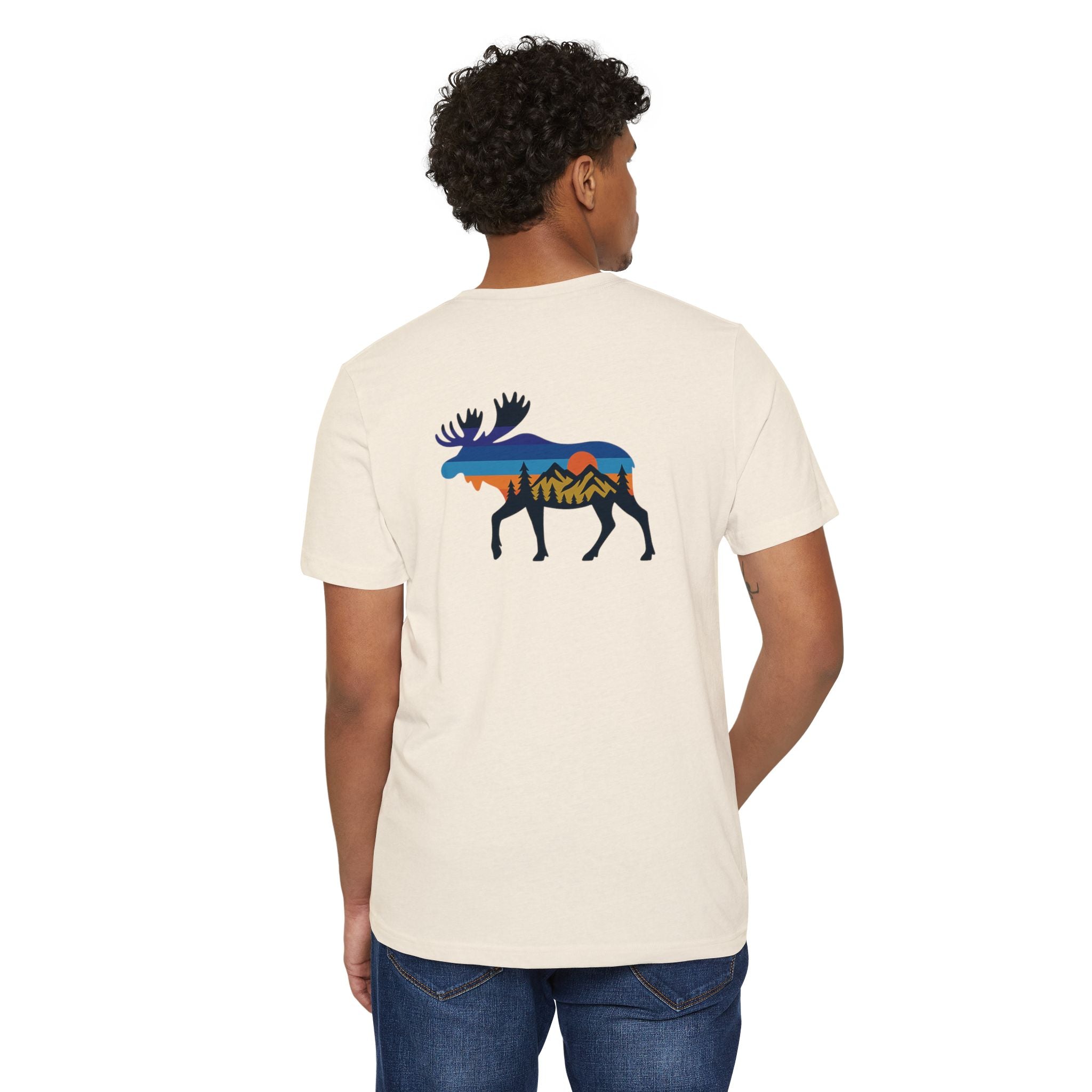 Retro Moose Mountain Sunset T-Shirt — Eco Organic Recycled Tee